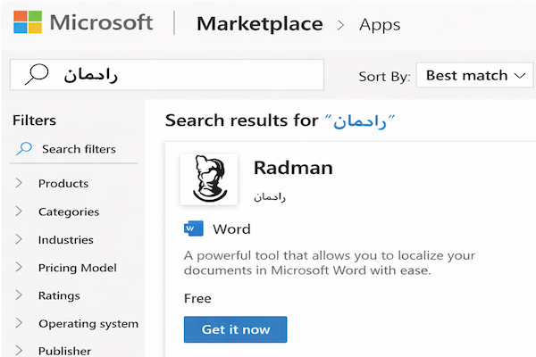 پارسی‌ساز رادمان در فروشگاه مایکروسافت